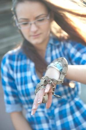 – Când eram mai mică, tatăl meu mi-a adus de pe câmp un şarpe. Nu l-am ţinut decât o zi, dar aşa a început pasiunea mea pentru ei. Când am văzut un prieten din Anglia că şi-a luat un şarpe, mi-am dorit şi eu. Şi aşa i-am avut. Oriunde merg, îi iau cu mine.
