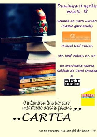 Câţiva entuziaşti iubitori ai cărţii organizează un eveniment inedit la nivel national, „Schimb de Cărţi Juniori”. Gazda este Muzeul Iosif Vulcan, în al cărui spaţiu elevii se vor putea intalni si vor putea discuta, isi vor putea recomanda carti, sugera lecturi si schimba impresii, in a doua duminica din lună, între orele 16-18.