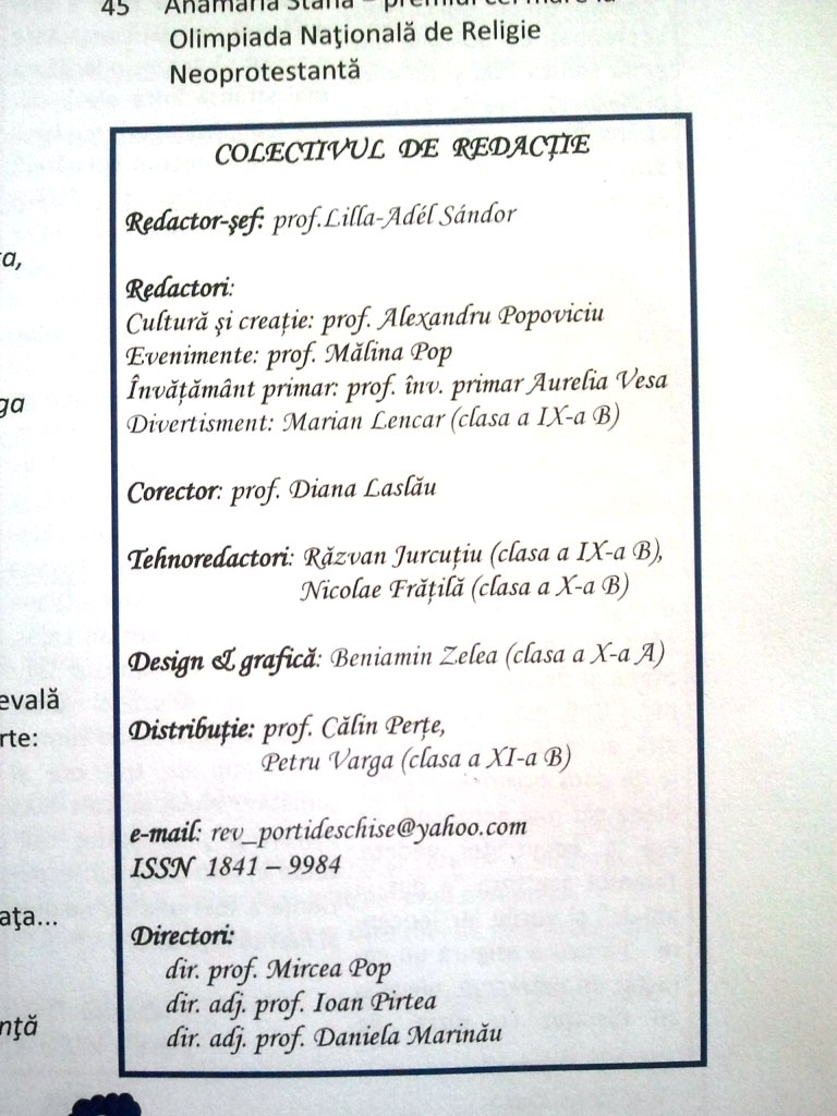 Noul număr al revistei „Porţi deschise”