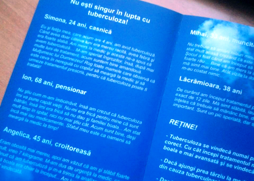 Elevii prezenti la aceasta campanie au primit si pliante, unde au fost trecute cateva simptome ale acestei boli, ca si povestile unor persoane care s-au confruntat deja cu aceasta boala. „Consider ca este foarte benefica promovarea acestei campanii TBC in scoli, deoarece aceasta boala poate aparea inca de la o varsta foarte frageda si este bine sa stim cat mai multe informatii despre simptomele care apar, cat si despre tratament”, spune o eleva a liceului nostru.