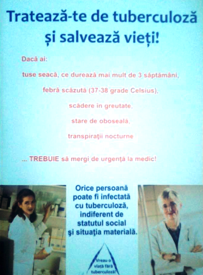 Doamna doctor nu a venit doar sa ne informeze, ci si sa observe cat suntem de documentați despre aceasta boala. De aceea, dansa ne-a adresat câteva întrebări, iar cei care au răspuns corect au fost răsplătiți cu şepci sau tricouri, care aveau inscripționat următorul mesaj: „Vreau o viata fara tuberculoza!”
