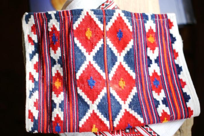 Dintre obiectele înscrise cu simboluri sacre, de departe întâietatea o deţine ia din costumul de sărbătoare. Romburi, coloane de romburi, spirale rotunde, spirale în unghiuri, V-uri, S-uri, W-uri, în combinaţii de o mare varietate şi frumuseţe fac faima acestui obiect de îmbrăcăminte. Versurile referitoare la costumul de sărbătoare românesc sunt revelatoare pentru sacralitatea simbolurilor: „Veştmânt lung / Din cer până-n pământ / Scris e-n spate, scris e-n piept, / Scris e-n şale, scris e-n poale, / De-amândouă părţile / E câmpul cu florile / Jur-prejurul poalelor / Scrisă-i marea tulbure / Pe la gât, la cheutori / Scrise-s sfinte sărbători / Pe la brâu, pe la mâneci / Scrise-s sfinte dumineci. / În mijlocul cerului / Este-un pom al raiului.”