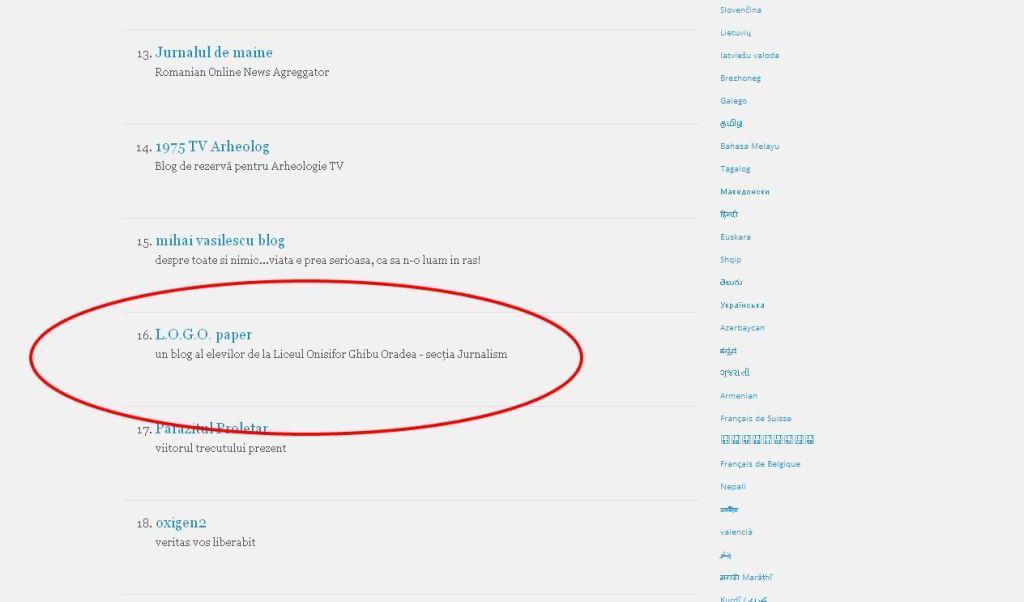 Top bloguri pe Wordpress. Statistică http://botd.wordpress.com/ din 7 decembrie