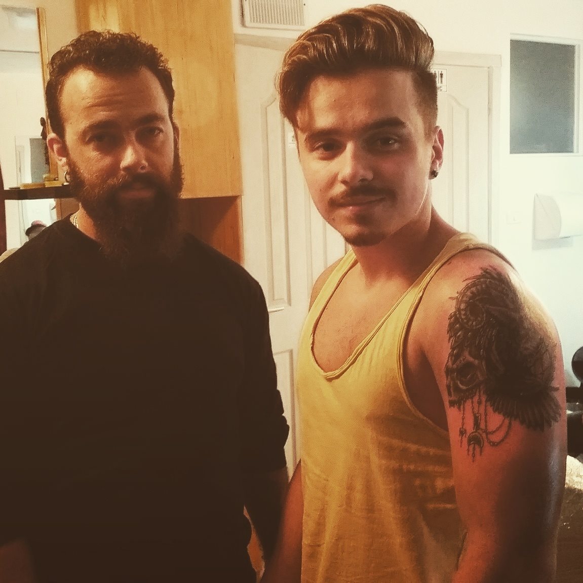 Robert Pup si artistul, dupa realizarea tatuajului