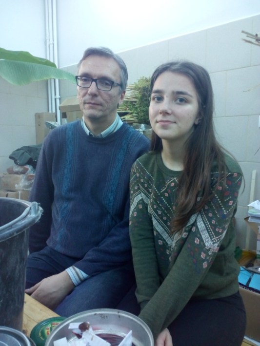 Domnul Adrian Gagiu, alături de subsemnata. Fotografia a fostă făcută la Muzeul Țării Crișurilor, într-o anexă aproape de vivariu. Foto: ANDREEA MOZA