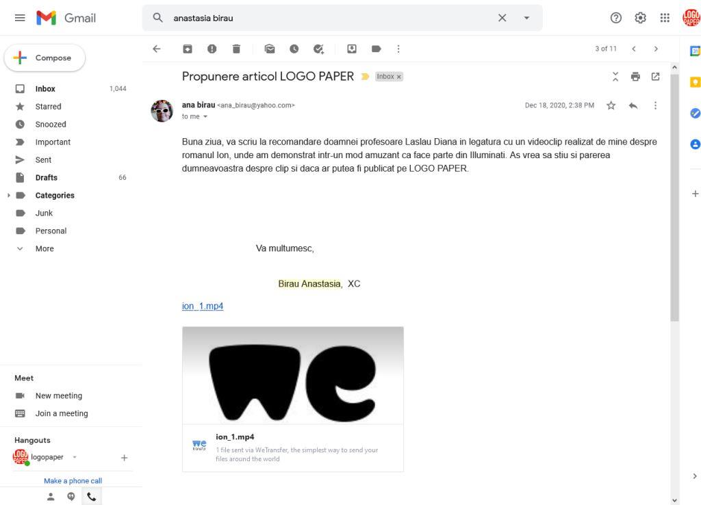Am avut minunata ocazie de a discuta cu Anastasia Birău, elevă a colegiului nostru, în clasa a X-a C, și de a o întreba câteva lucruri despre un material pe care l-a realizat.