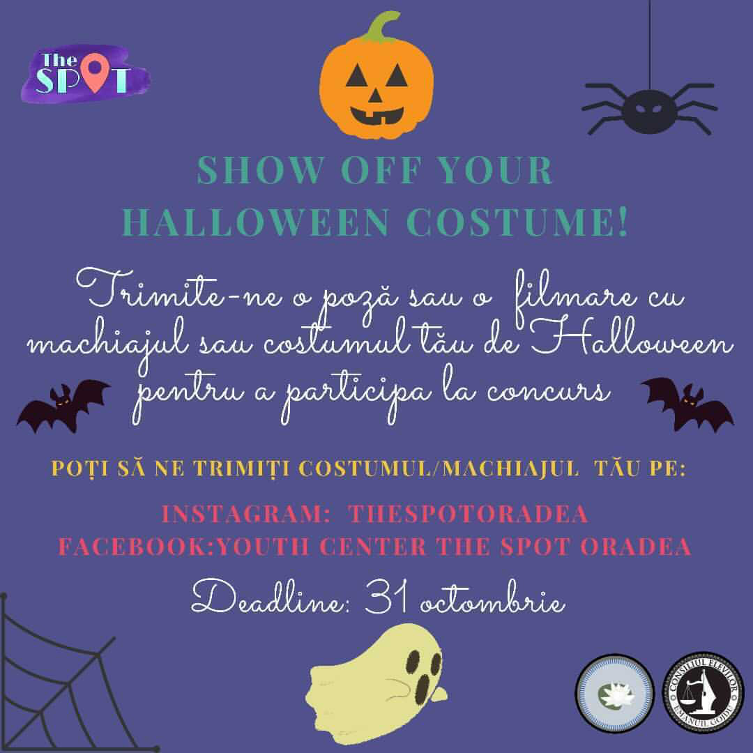 Chiar dacă ne aflăm în vacanță și în pandemie, vă invităm să realizați costume și machiaje inedite pentru a fi răsplătiți cu premii pe măsură. Datorită creativității tale, poți câștiga o sesiune individuală de orientare în cariera oferită de un specialist HR, o ședință foto distractivă cu tematică Halloween sau un tur ghidat a celor mai frumoase locuri din Oradea.