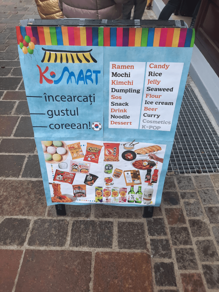 Spre marea noastră bucurie, în data de 19 noiembrie a acestui an s-a deschis K-mart, un magazin alimentar coreean ce vinde dulciuri, băuturi alcoolice și acidulate, chips-uri, ceaiuri, mâncăruri congelate, sosuri, cosmetice, alge, albume si accesorii K-pop, toate acestea provenind din Asia.
