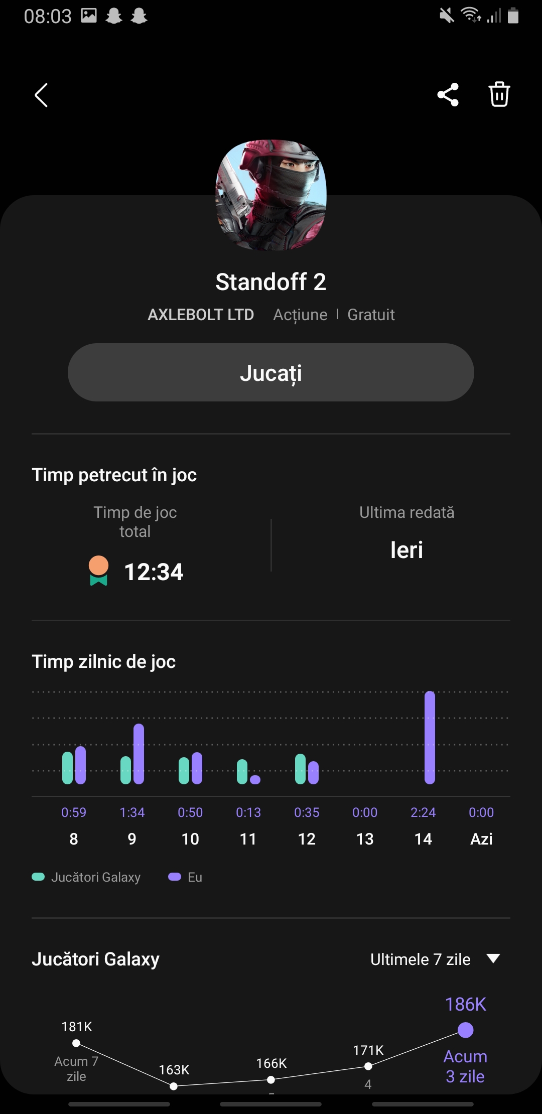 O găsim direct instalată pe telefon sau care se poate instala de pe Magazin Play sau Appstore gratuit. Este o aplicație de recomandat, deoarece aceasta te informează cat și când ai jucat, în principal dacă petreci mult pe jocuri.