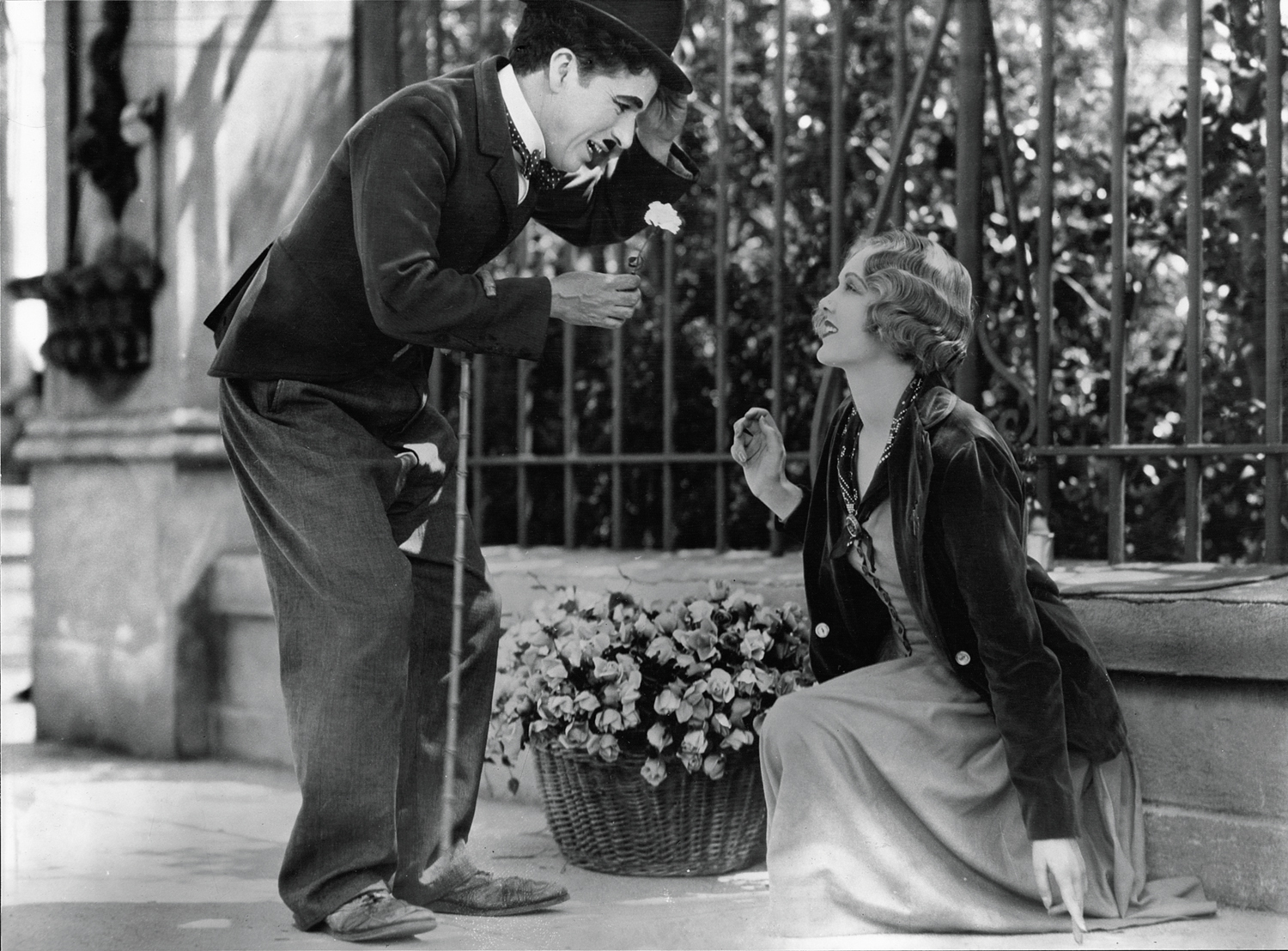 Zilele trec, iar Vagabondul este eliberat din arest. Starea sa materială e mai rea ca niciodată și e cât se poate de deprimat. Se întoarce la locul în care a întâlnit-o prima oară pe tânără, dar ea nu mai este acolo. Descumpănit, rătăcește străzile orașului, unde e nevoit să suporte aceeași batjocură venită din partea vânzătorilor de ziare. Și brusc, se trezește în dreptul unei florării deosebit de elegante. O domnișoară iese din spatele vitrinei și, cuprinsă de milă, se oferă să-i dăruiască amărâtului o floare. Rușinat și speriat, Vagabondul încearcă să o ia la fugă, dar e opintit pe loc de chemarea acesteia. Se apropie încet, iar ea îi apucă mâinile în palmele sale gingașe. Și atunci îl recunoaște. „Poți vedea acum?” o întreabă el plin de emoție. „Da, acum pot vedea.” răspunde ea și ochii i se umplu de lacrimi. Chipul Vagabondului schițează un zâmbet pur, ca de copil. Și imaginea se preface în negru.