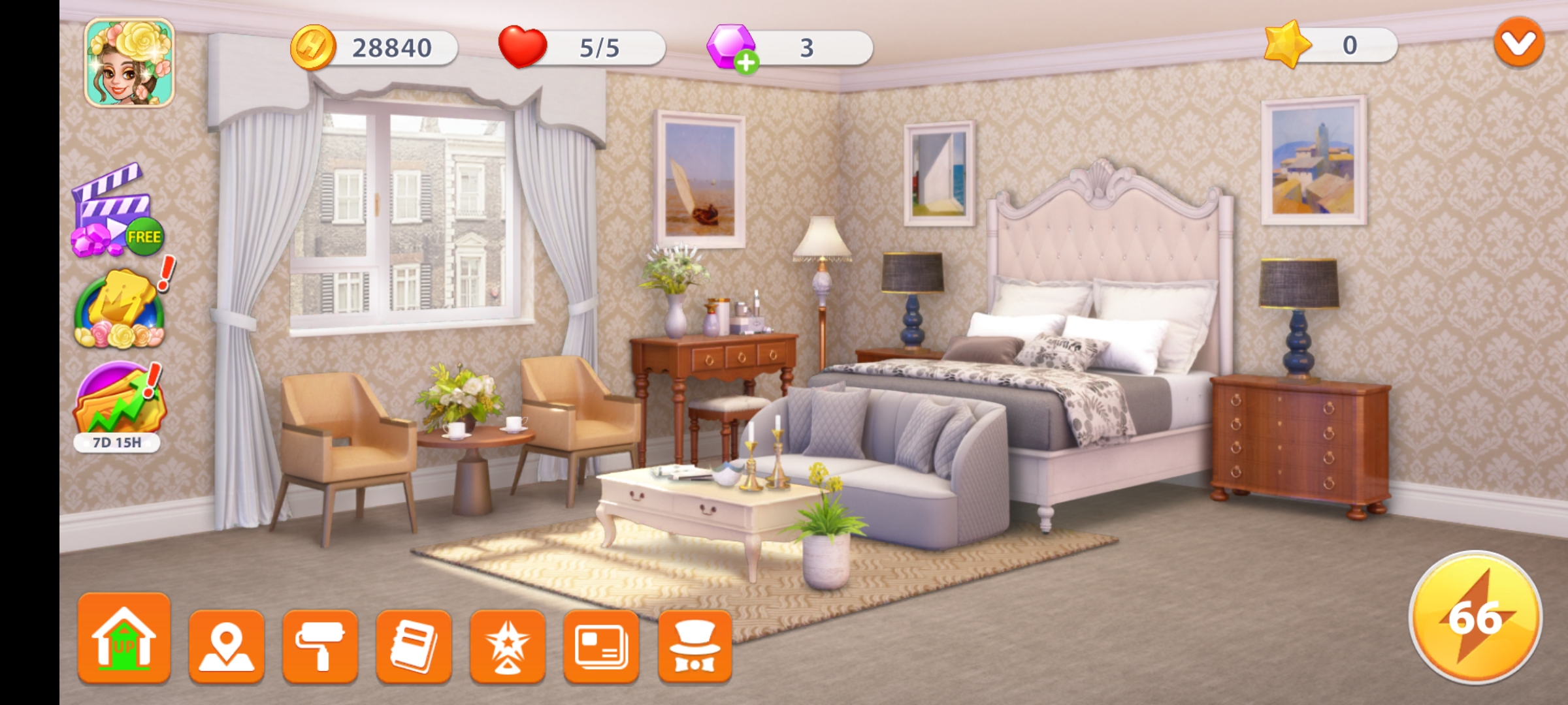 După ce ați terminat personalizarea camerei, cu banii și diamantele rămase puteți sa faceți upgrade la diferite arii ale hotelului, pentru a îmbunătăți timpul realizării diferitor sarcini.