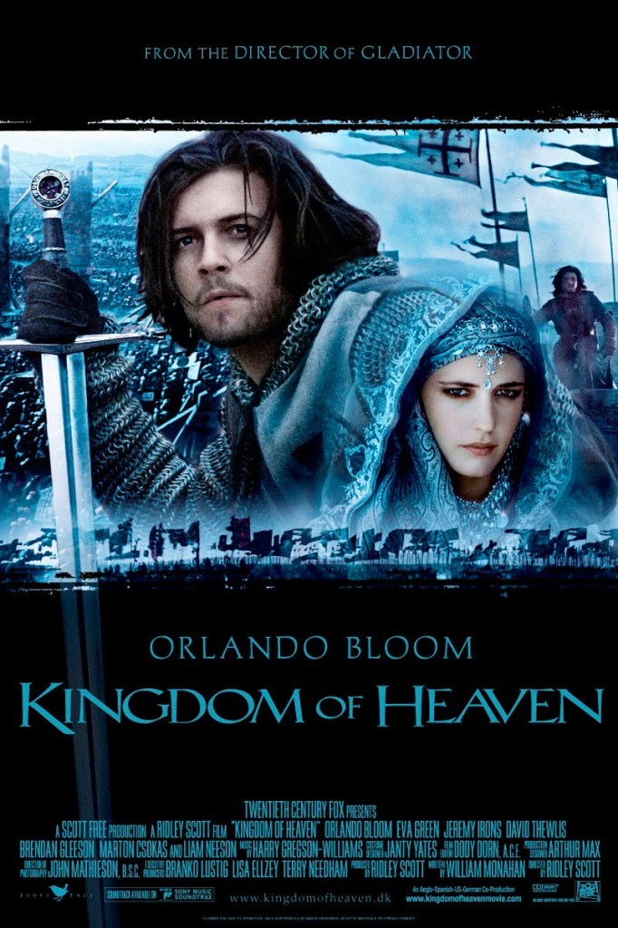 Lansat în 2005, Kingdom of Heaven este un film regizat de Ridley Scott, care ni-l prezintă pe Balian, un fierar dintr-un sat din Franța, ce-și plânge soția, care s-a sinucis după moartea fiului lor. Între timp, apare Godfrey, un nobil cruciat, venit pentru a-l recunoaște ca fiu.