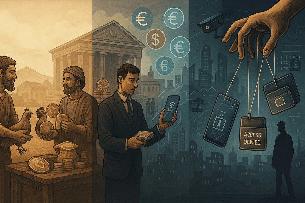 Money has always played a central role in shaping human societies, and its evolution tells a story of increasing control, surveillance, and centralization. From the early barter system—where people traded goods directly, relying on mutual needs—to today’s digital currencies, the journey of money reflects not just innovation but also the shifting balance of power. While the barter system was limited and inefficient, it was inherently private and anonymous. No central authority dictated the terms of exchange. With the introduction of metal coins paper money, they became more standardized and portable, but it also marked the beginning of centralized control over value.