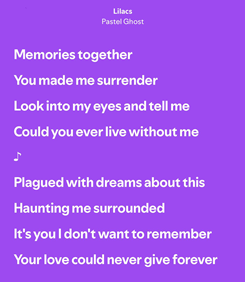 Refrenul melodiei, cu tonuri visătoare și oarecum nostalgice, reflectă exact acea dualitate a liliacului din natură – frumusețe delicată care nu ține pentru totdeauna, dar lasă o urmă intensă, aproape mistică. Astfel, Lilacs de la Pastel Ghost nu este doar o piesă despre o floare, ci o interpretare artistică a modului în care liliacul poate reprezenta conexiunea dintre trecut și prezent, între speranță și acceptare.