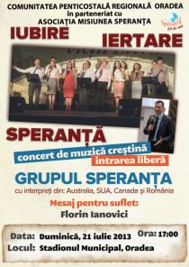 Grupul Speranta va susţine o serie de concerte extraodinare de muzică creştină în România. În 20 de ani de activitate muzicală, cu 36 de albume lansate, muzica lor a încântat milioane de români. Grupul Speranța va susține la Oradea duminică,