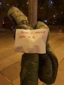 „Vine iarna. Oradenii sunt invitati sa daruiasca o haina de iarna oamenilor strazii pentru a trece mai usor de anotimpul rece. Oradenii sunt invitati la o actiune caritabila, sa lase o haina de iarna atarnata pe copac alaturi de un