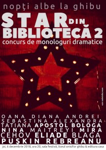 Mâine, în data de 6 decembrie 2018, sunteţi invitaţi să luaţi parte la cea de-a doua ediţie a concursului de monologuri „Star din bibliotecă”. De la ora 20:00, în Sala Festivă a Liceului Teoretic Onisifor Ghibu vor evolua în faţa