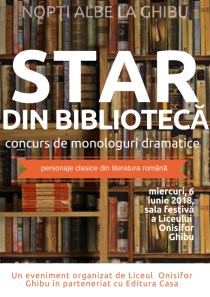 Miercuri, 6 iunie, de la ora 20, sunteţi invitaţi în sala festivă, la primul eveniment sub genericul „Nopţi albe la Ghibu”. Elevi din clasele 9 C, 10 A şi 11 A, coordonaţi de prof. Alexandru Popoviciu, vor susţine câteva monologuri