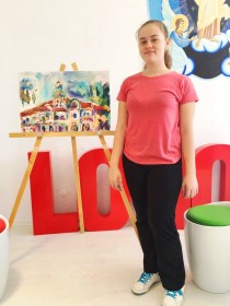 Pentru expoziţia de săptămâna viitoare, Diana Ciocic pregăteşte şi câteva lucrări inspirate de arhitectura Secession a oraşului, sub îndrumarea profesoarei Simona Derecichei, care este şi conducătoarea Cercului de pictură al şcolii. Nu uitaţi: joi, 2 iunie 2016, în holul Bibliotecii