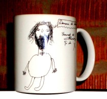 Un minunat gest de recunoştinţă, înscris cu zece ani în urmă, pe o foaie de hârtie, de o elevă din şcoala primară, pentru un dascăl al său. Portretul a fost transferat pe o cană, odată cu dragostea şi candoarea mesajului.