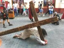 Azi, 29 aprilie, la ora 17, sute de oradeni s-au strans in Parcul 1 Decembrie din centrul orasului nostru, pentru a vedea reconstituirea Drumului Crucii. Aceasta scena destul de agresiva a inceput din parcul din spatele Facultatii de Medicina, pana
